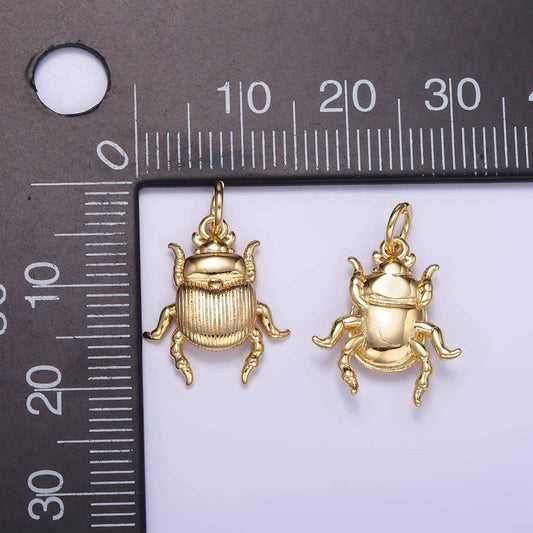 14K Gold Filled Scarab Beetle Textured Animal Charm | W775