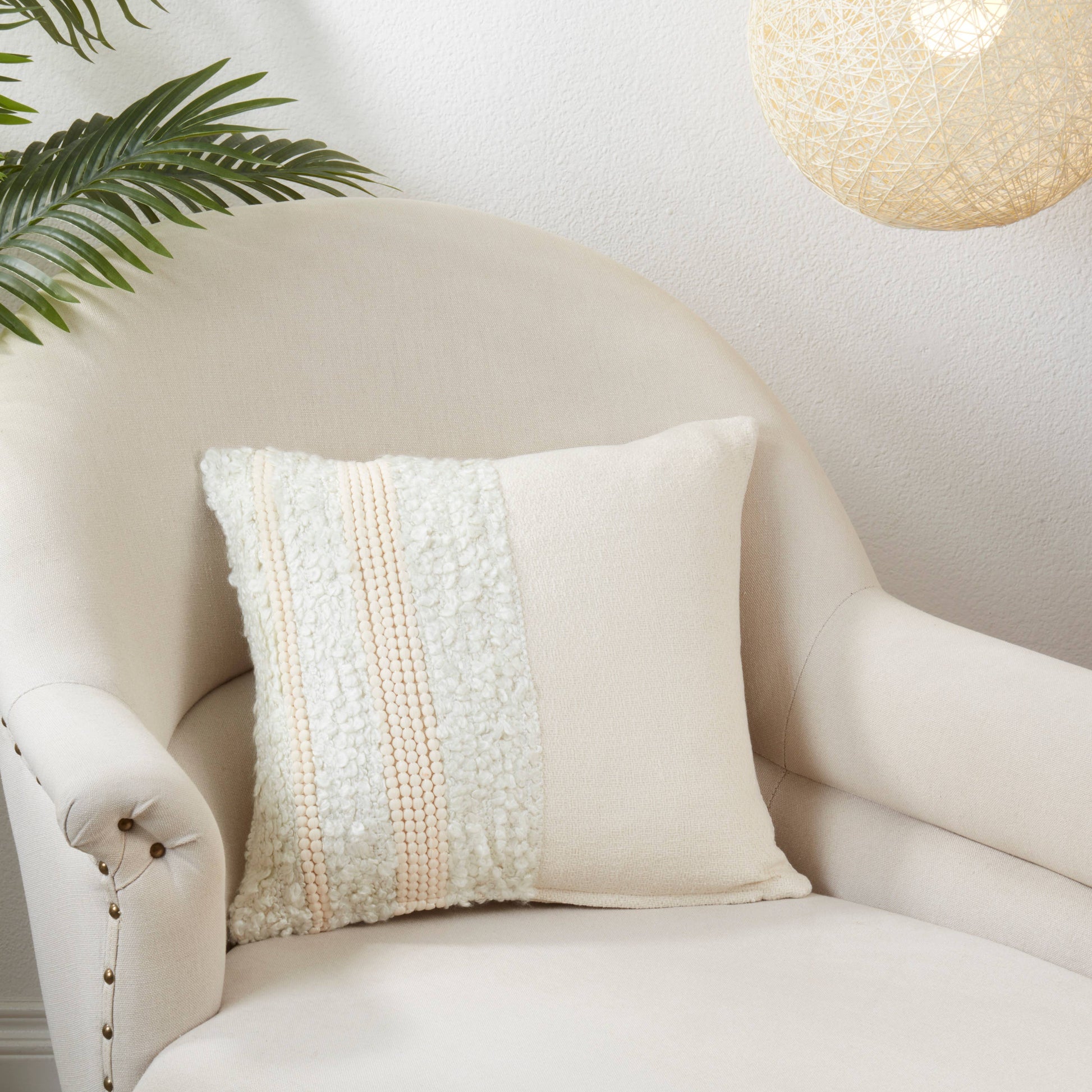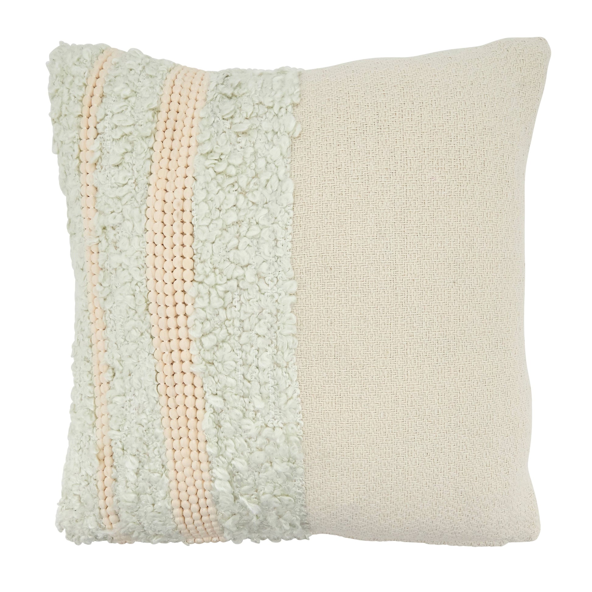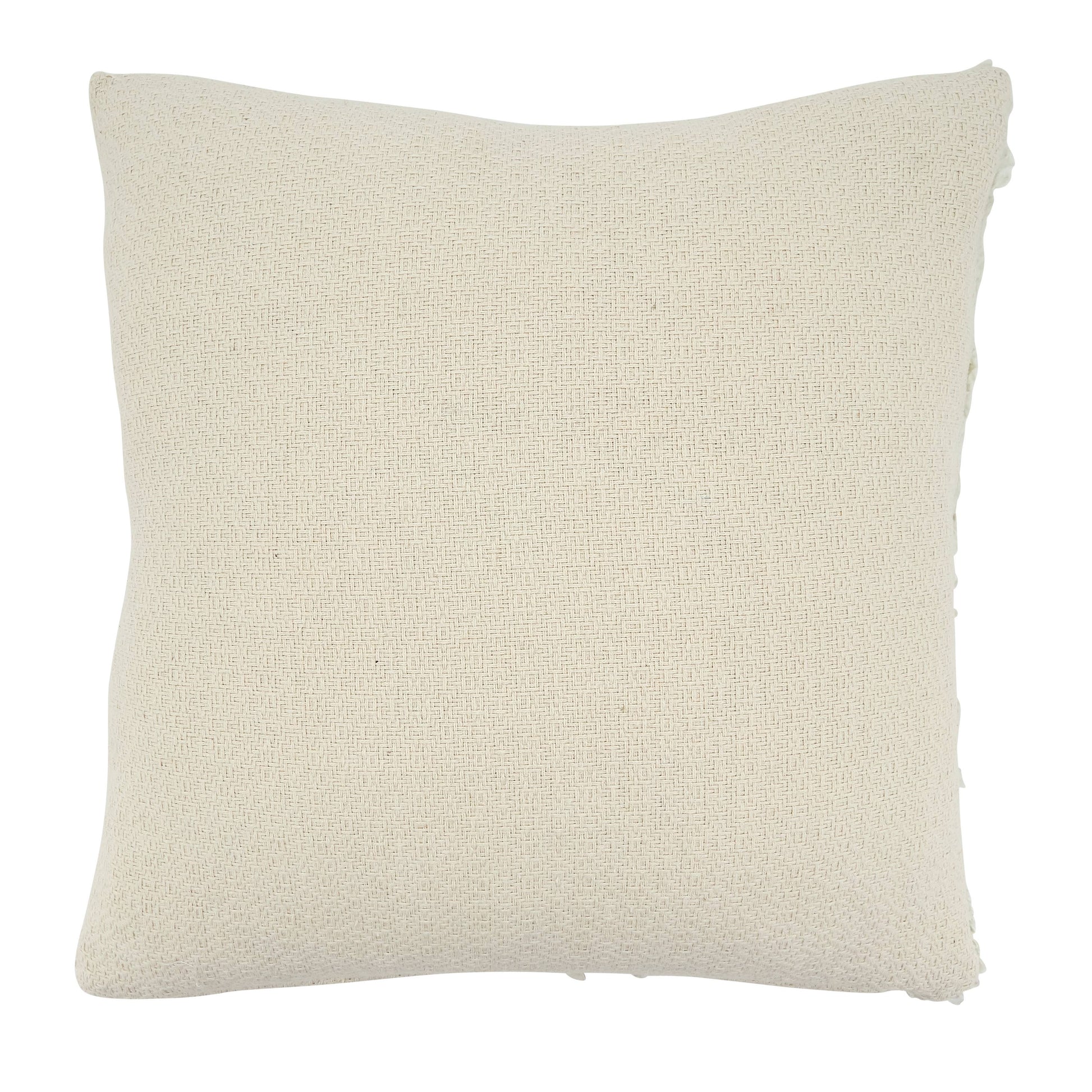 Featuring light colors and tones, the Ivory Sky Pom Pom Applique Throw Pillow Cover is very easy to fit in your existing décor and pairs effortlessly as well. It’s made with 100% cotton, which delivers softness and durability. Its unique design also makes for a lovely gift.