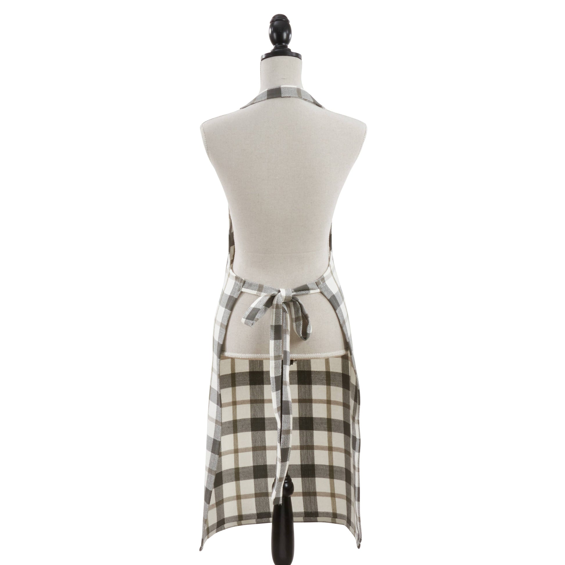 Cook and prep your table in style with this plaid kitchen apron. The heavy cotton construction will make sure your clothes are protected against spills and splatters while making laundering easy. The neutral greens, browns, and taupe colors and undertones make it versatile to gift to any cook or baker! Fits any body type, with easy-to-adjust back ties.